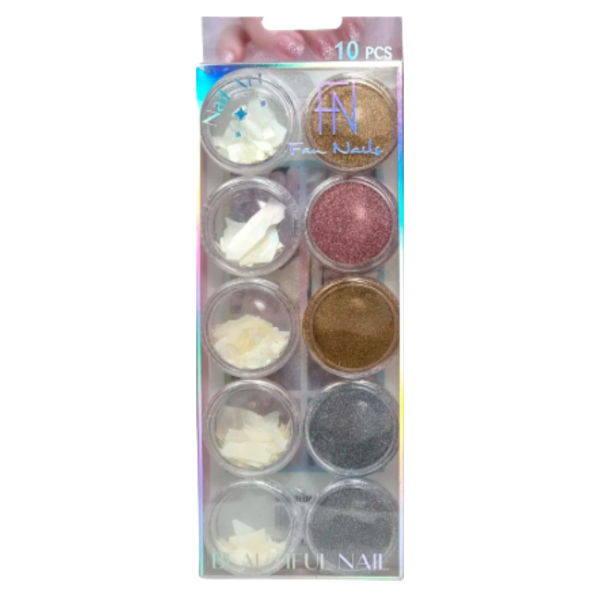Kit Nail Art Fan Nails Madre Perola+Pó Cromo