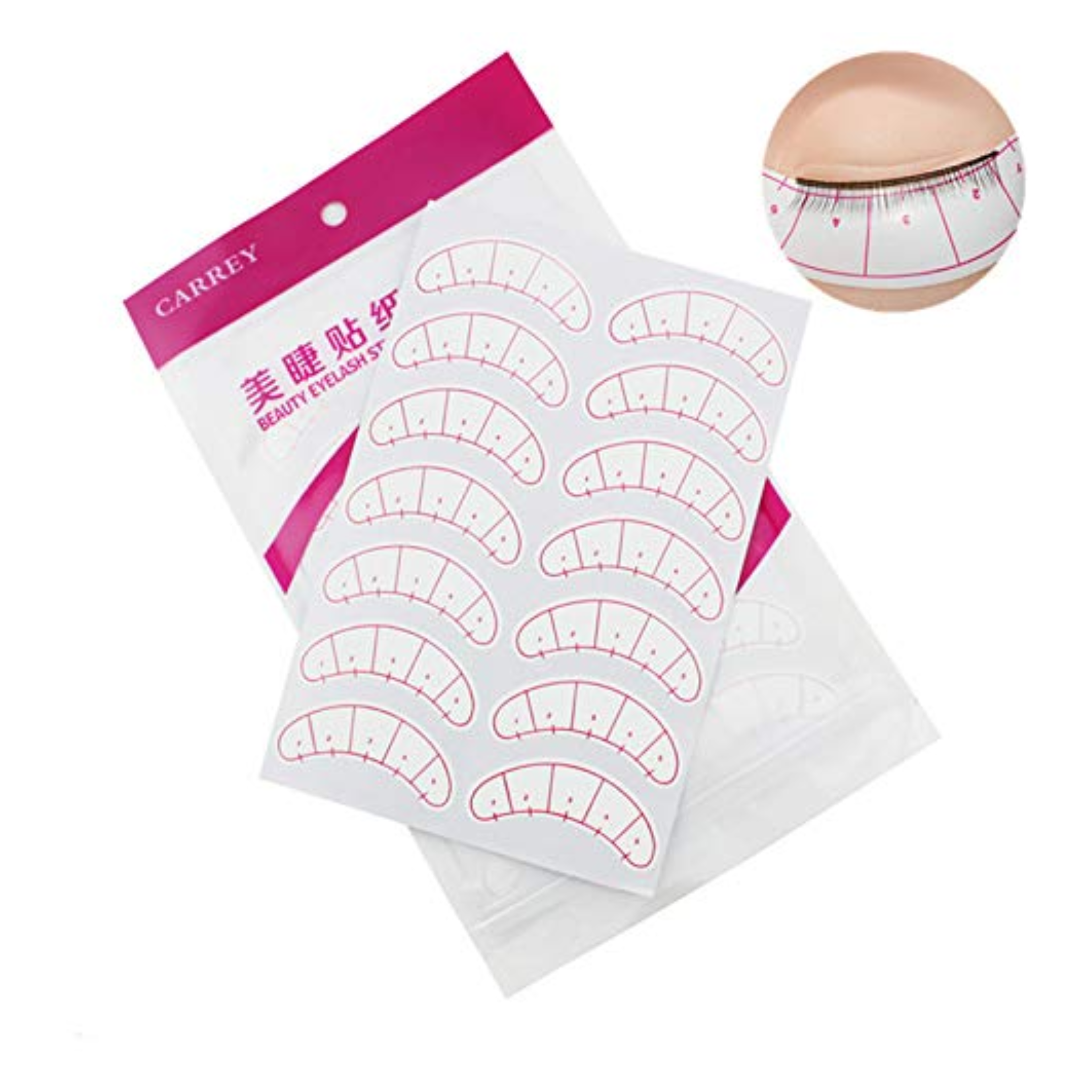 Este produto da Coralain é uma cartela de adesivos guias para mapeamento (mapping) de extensão de cílios. Eles são ferramentas essenciais para profissionais Lash Designers organizarem o design do olhar de forma simétrica e precisa