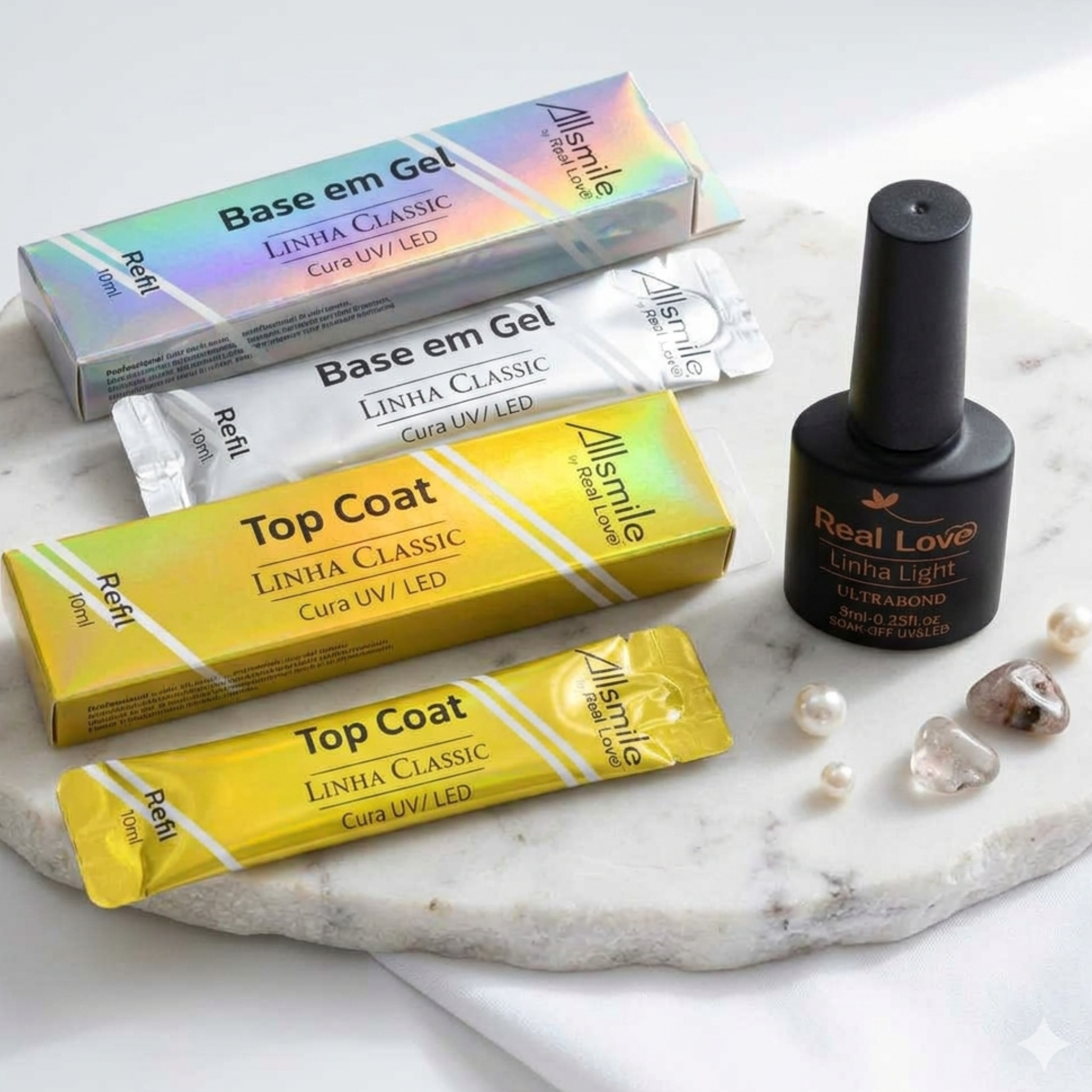 Eleve o nível do seu trabalho com o combo perfeito para unhas resistentes e com brilho espelhado. Este kit reúne a tecnologia da Real Love com a praticidade dos refis Allsmile, garantindo economia e alto desempenho.