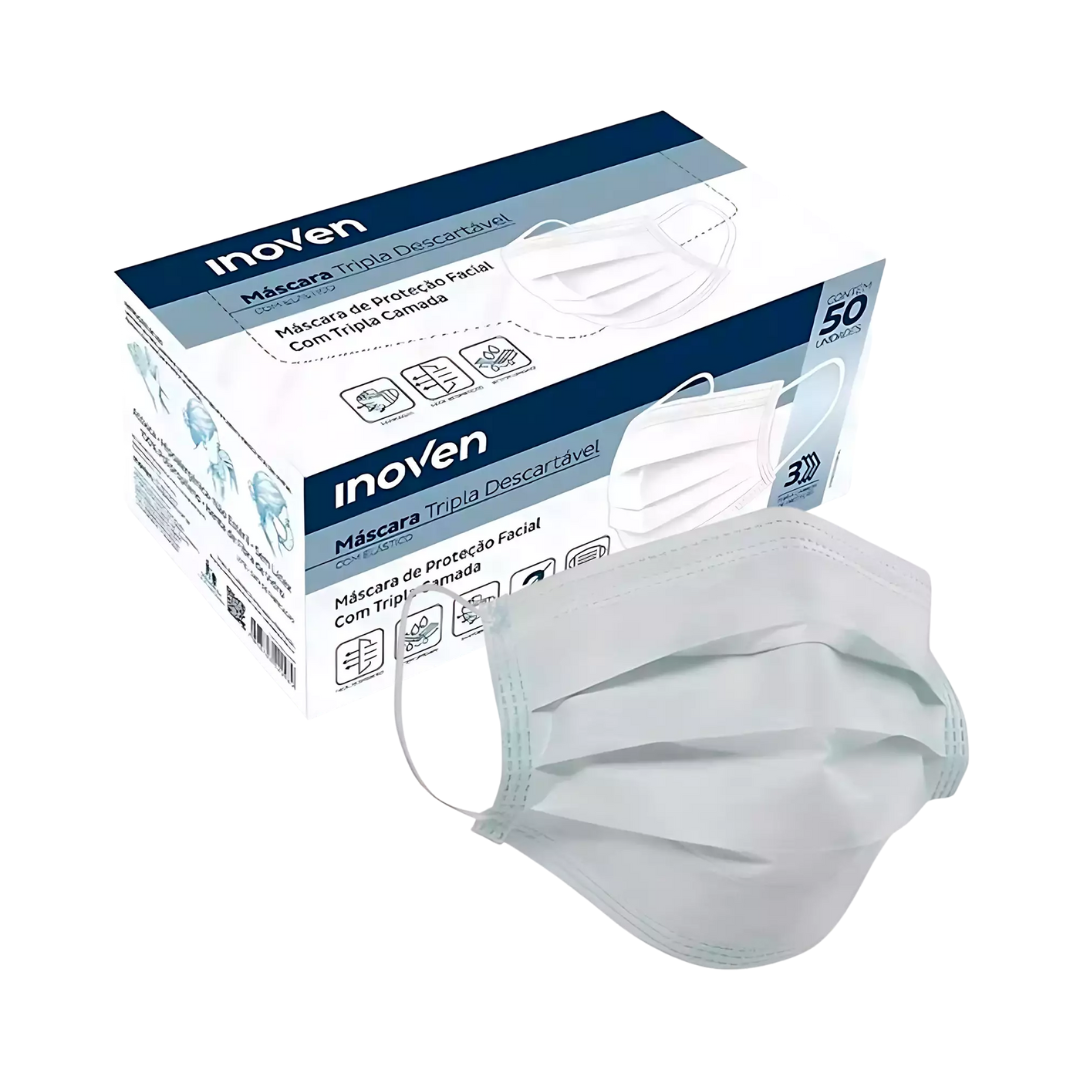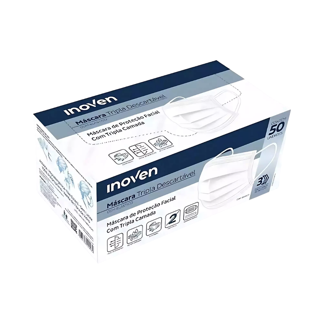 Máscara Tripla Descartável com Elástico Inoven 50uni